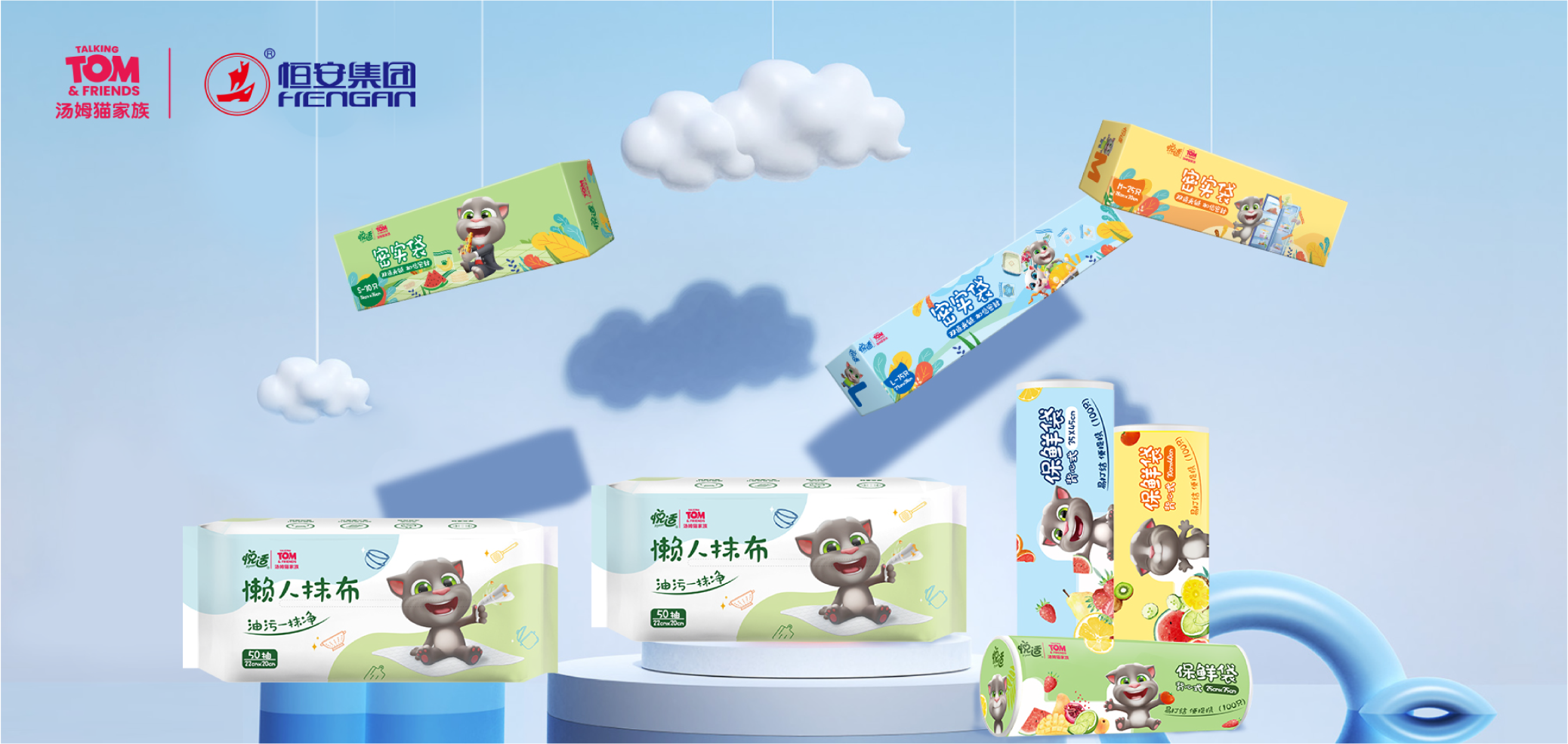 公司与国内知名家庭生活用品企业恒安集团合作推出密实袋、保鲜袋、懒人抹布等多款创意联名产品,开启别样品质生活。